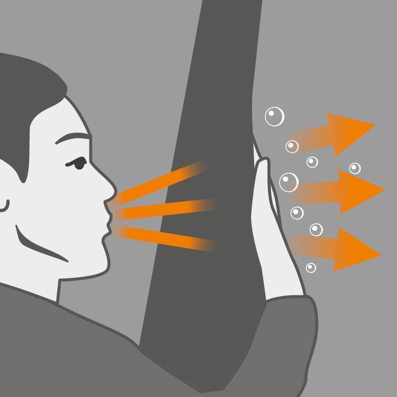 Appoggialo alla bocca, coprilo con una mano e soffia con forza.
